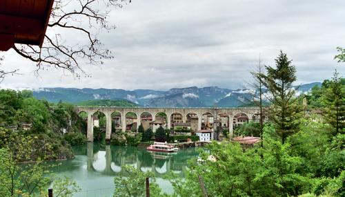 Byn St Nazaire en Royans skymtar bakom akvedukten, som är modern och används. Vårat första stop mot Grenoble