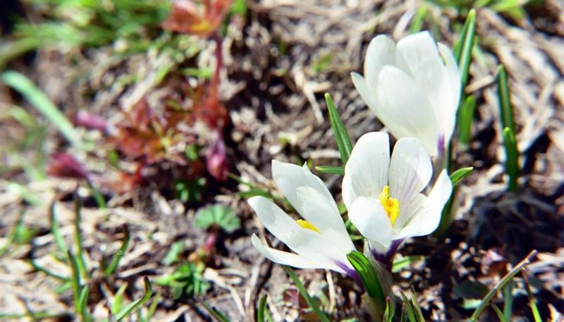 Blommor, snödroppar? Anna har kryptit på knä på några tusen meters höjd ivf.