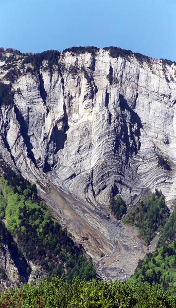 Här syns det väldigt tydligt hur berget har blivit tillknycklat under ett antal år och gånger.